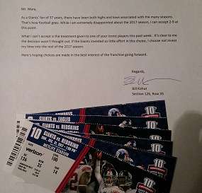 comments(0) ![]() A Big 2017-12-06 22:27:14 All hell broke loose last week when Ben McAdoo named Geno Smith (Geno Smith, really?) the starter over Eli Manning, which essentially snaps the Giants' QB iron man streak at 210 games. I could write a small novel on why this move was both idiotic and disastrous in nature, but will instead provide the letter I wrote to John Mara, which included my remaining tickets to Dallas, Philadelphia, and Washington: Mr. Mara, As a Giants’ fan of 37 years, there have been both highs and lows associated with the many seasons. That’s how football goes. While I am extremely disappointed about the 2017 season, I can accept 2-9 at this point. What I can’t accept is the treatment given to one of your iconic players this past week. It’s clear to me the decision wasn’t thought out. If the Giants invested so little effort in this choice, I choose not invest my time into the rest of the 2017 season. Here’s hoping choices are made in the best interest of the franchise going forward. ![]() After the Raiders game, I received a voice mail from Allison Stangeby, Vice President of Community & Corporate Relations with the Giants. She relayed to me that Mara had received my letter, and he dropped off the tickets to her to be donated. That however, was before the firing of McAdoo, and she wanted to touch base with me about the rest of the season. Her offer was to FedEx my tickets back to me so I could attend the games, and include pre-game sideline passes to the Cowboys game. I thought the effort put forth by the Giants - and in particular Ally - was a very nice gesture which I appreciated greatly. We engaged in about a 10 minute phone conversation and it, at a minimum, re-instilled my belief that the Giants organization does clearly care about their fans. I never expected any response, but was hoping my letter and tickets would at least have some sort of impact, however small, on what the fans as a whole were feeling. In the end, I think Giant fans everywhere made that quite evident. add comment |